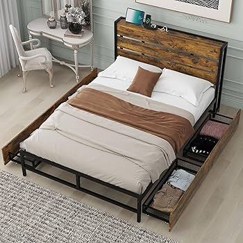 تخت خواب یک و دو نفره باکس دار (4 باکس) چوب و فلز طرح مهراد